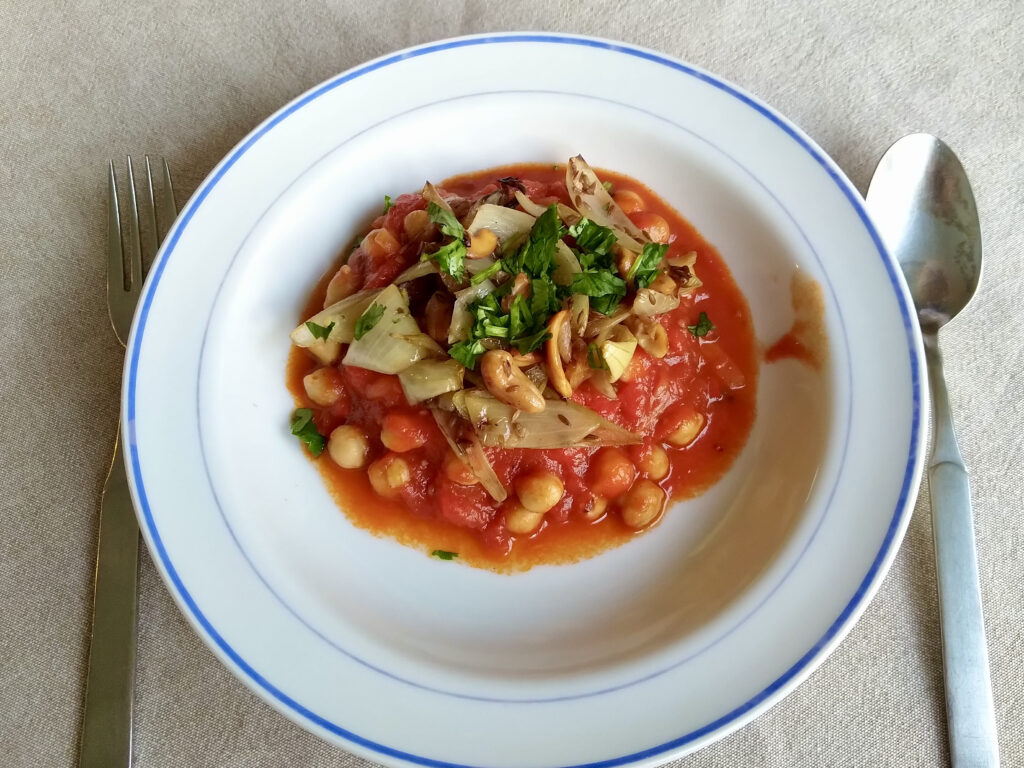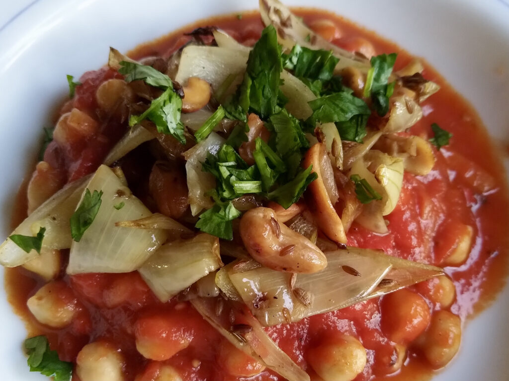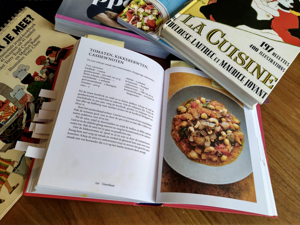 I found this particular recipe in the Dutch translation of Nigel Slater’s Greenfeast: Spring and Summer. However, I discovered you can also access a different version of it online through The Guardian’s website. It has the same ingredients and only minor differences in the description of its preparation. You can find it here: https://www.theguardian.com/lifeandstyle/2017/feb/21/nigel-slater-chickpeas-and-spiced-tomato-sauce.